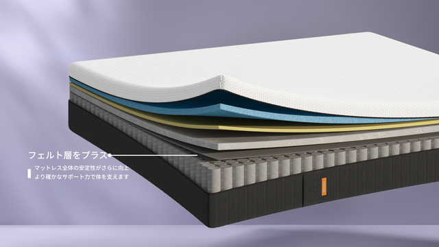 コイルとフォームの間に配置されたフェルト層が、マットレス全体の安定性を高め、体をしっかりと支えます。