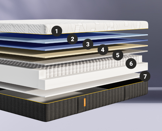 エマ・ラグジュアリーV2は、1平方メートルあたり257個の独立したポケットコイル(各コイルの深さは19.5cm)を備えています。AeroFlex®テクノロジーを採用し、頭、首、肩、腰、太もも、ふくらはぎ、足の7つの部位をしっかりと支えながら、通気性も向上させています。マットレス全体がメモリーフォームで覆われているため、端までしっかりとサポートし、ベッドの端に座ったり、夜中に起き上がったりする際にも、より安定したサポートを提供します。